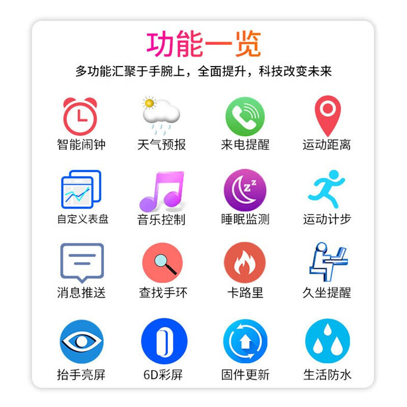 智能手表多功能运动心率血压血氧计步闹钟蓝牙手表男女款长续航